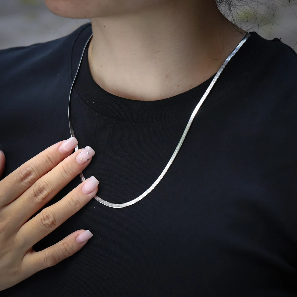 Jemný náhrdelník z chirurgické oceli typu "hádek". Povrch náhrdelníku je leštěný. Náhrdelník je široký 3mm. Délku náhrdelníku lze nastavit v rozmezí 50-55cm.