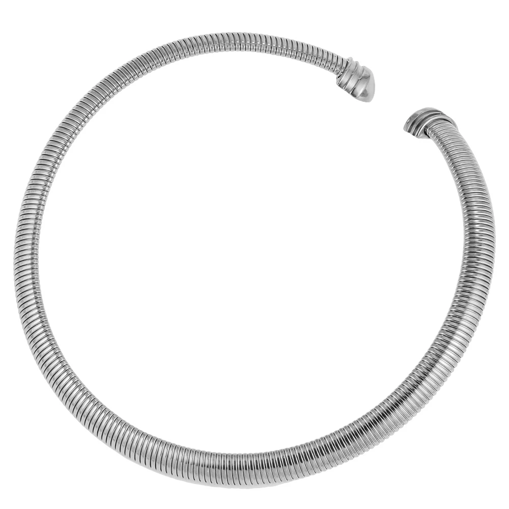 Pevný ocelový náhrdelník. Náhrdelník má leštěný povrch. Vnitřní průměr náhrdelníku 130mm, šířka 10mm.
