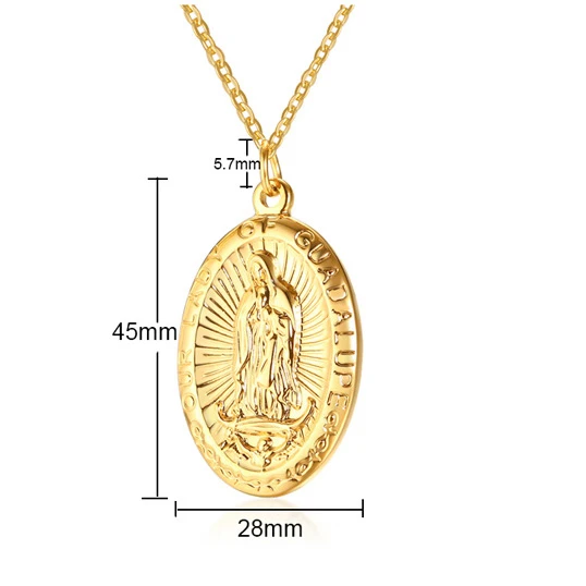 Přívěsek s řetízkem z chirurgické oceli. Šperky z chirurgické oceli jsou stále velmi žádané a populární v bezpočetných řadách jejich spokojených uživatelů. Mezi velmi oceňovanou vlastnost ocelových šperků patří nevyvolávání alergických reakcí. Dále lze vyzdvihnout odolnost a barevnou stálost šperků vyrobených z chirurgické oceli. Všechny tyto vlastnosti má také tento zlatý náhrdelník s madonkou.
