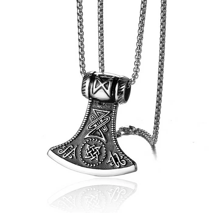 Náhrdelník Thórovo kladivo s kuličkovými řetízkem dlouhým 60cm z chirurgické oceli. Velikost přívěsku 45x50mm. Thórovo kladivo má povrch ozdobený plastikami s černou patinou.