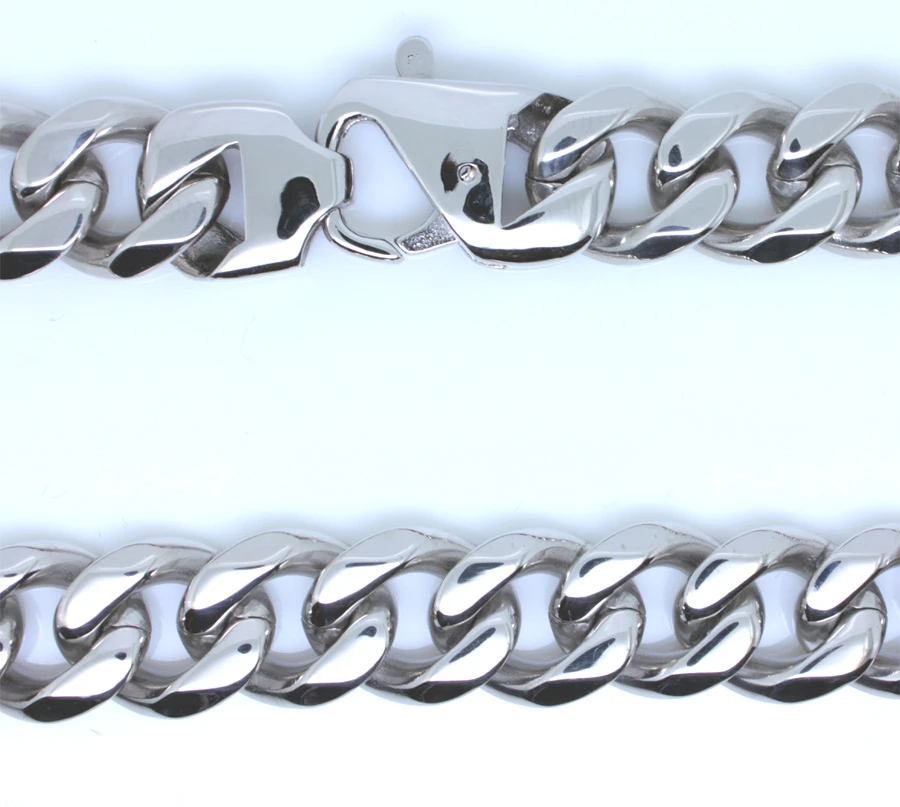 Masivní náhrdelník z chirurgické oceli na krk. Povrch náhrdelníku je leštěný. Díky zaobleným hranám se náhrdelník pohodlně nosí. Karabinové zapínání zajišťuje jeho bezproblémové sundávání i nandávání. Náhrdelník je široký 15mm, tloušťka náhrdelníku 6mm.