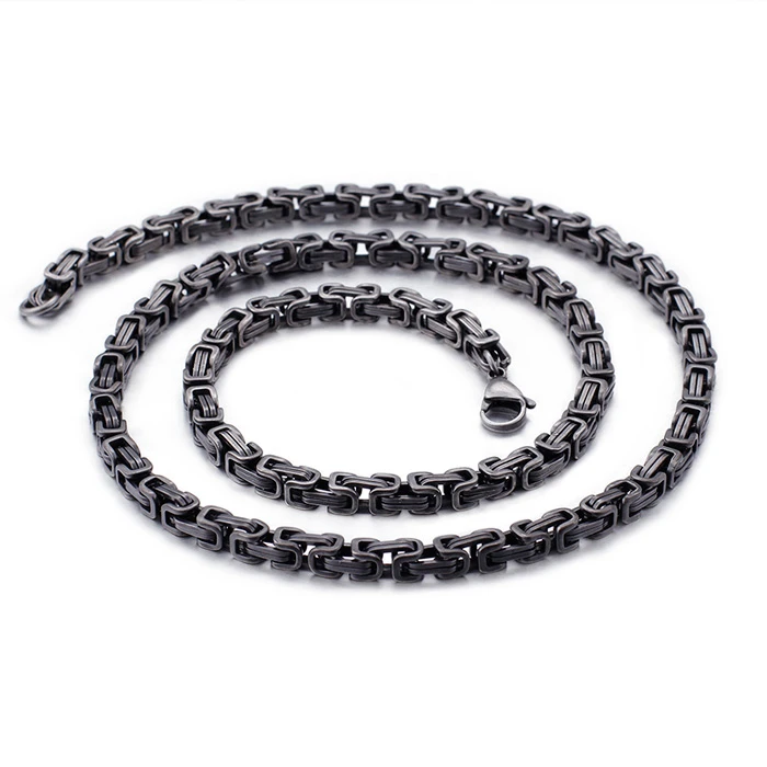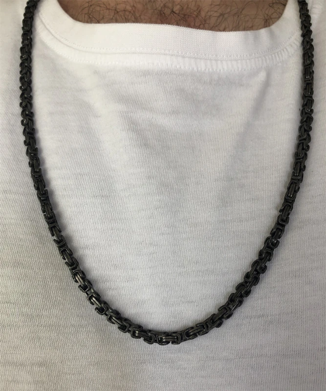 Dlouhý náhrdelník z chirurgické oceli. Povrch náhrdelníku je v barvě pistolové šedi. Náhrdelník má čtvercový profil 4x4mm. Délku náhrdelníku lze na přání zdarma zkrátit.