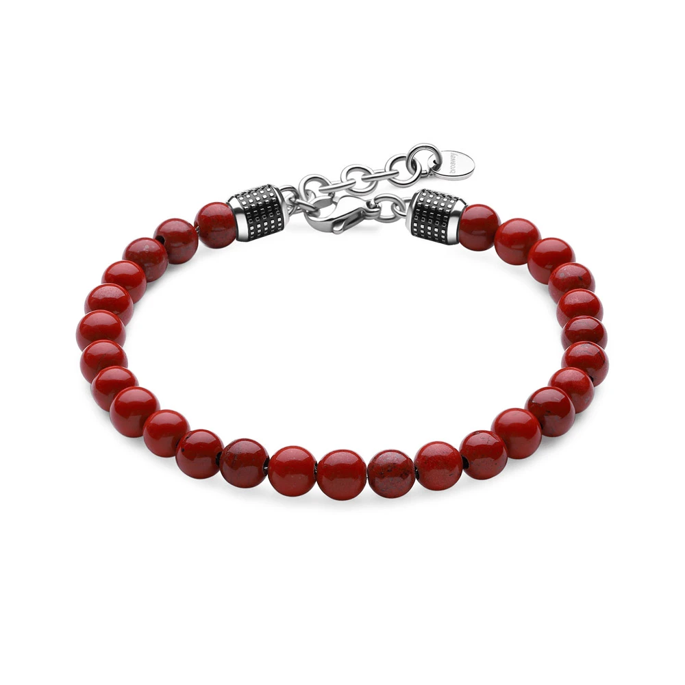 Pánský náramek z chirurgické oceli 316L a jaspisu. Červené korálky jsou z jaspisu, zapínání náramku je ze smaltované chirurgické oceli 316L. Náramek je dlouhý 21cm.