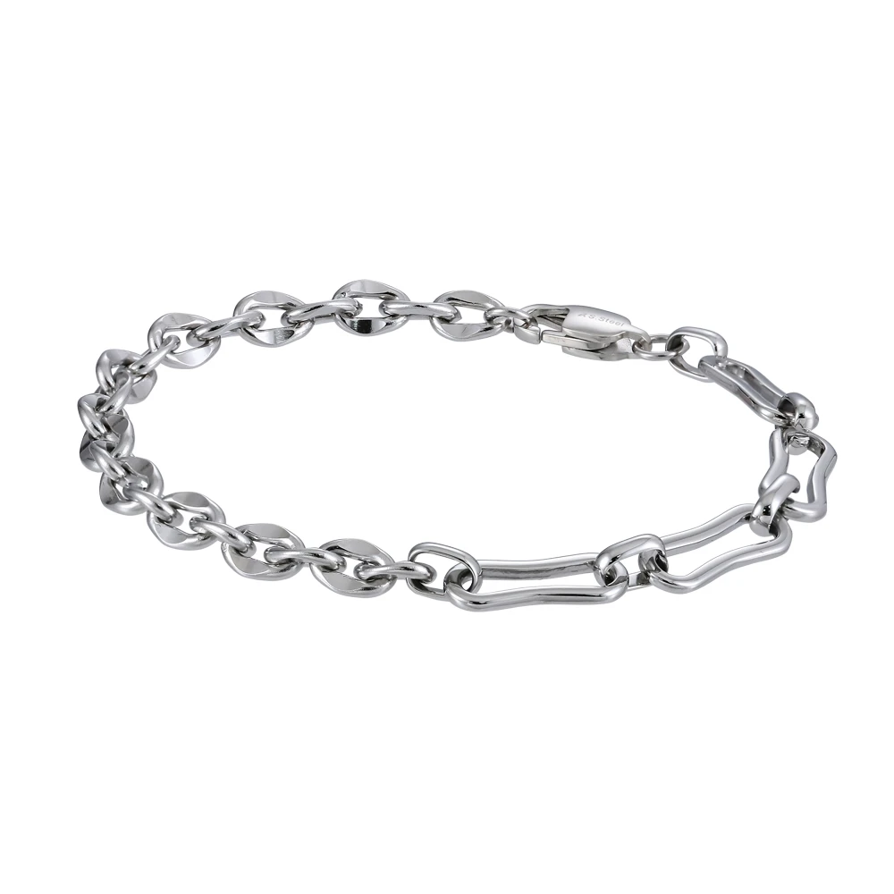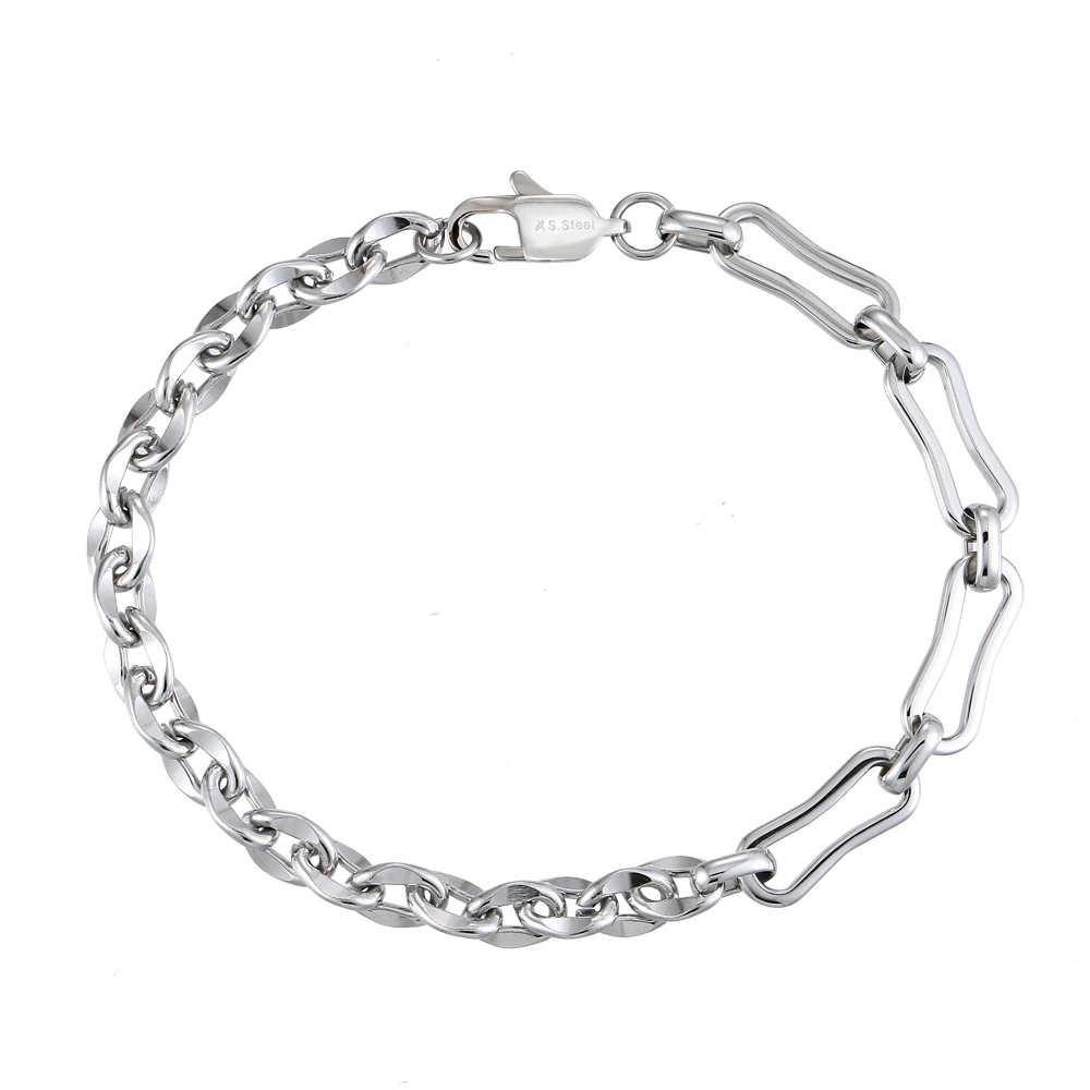 Náramek ruku z chirurgické oceli. Povrch náramku je leštěný. Větší články náramku jsou široké 6mm, oválné očka jsou široké 5mm. Náramek je dlouhý 19cm.