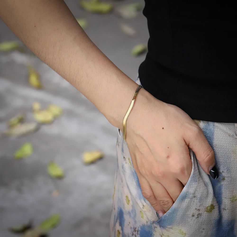 Náramek ruku z chirurgické oceli typu hádek. Povrch náramku je leštěný. Délku náramku lze nastavit v rozmezí 18-20cm