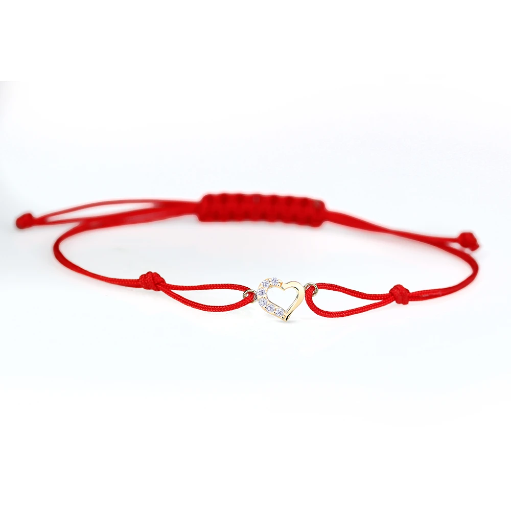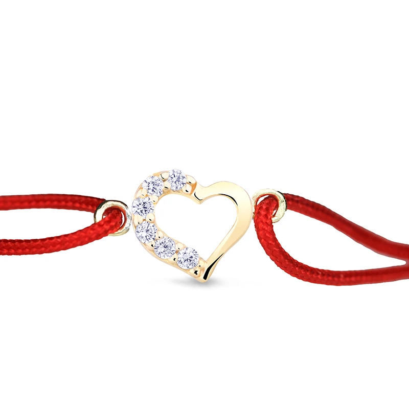 Dámský moderní náramek na ruku kombinující zlato 585/1000 se zirkony a nylonem. Zlaté srdíčko se zirkony dodává náramku punc luxusu a solidnosti, nylonová šňůrka sportovní a minimalistický vzhled. Náramek je dodávaný v originál krabičce Cutie Jewellery