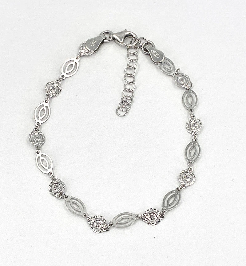 Stříbrný náramek na ruku pro každou příležitost, ať už se chystáte na večeři, do kanceláře nebo jen na kávu s přáteli, tento náramek perfektně doplní jakýkoli outfit. Díky kvalitnímu a detailnímu zpracování je náramek příjemný na nošení a zároveň dostatečně odolný, aby vydržel každodenní používání. Sháníte krásný dárek pro blízkou osobu ? Tento stříbrný náramek je tou správnou volbou. Náramek můžete kombinovat se stříbrnými náhrdelníky z naší nabídky. Náhrdelník je samozřejmě označený a opuncovaný podle puncovního zákona. Náramek je dodávaný v dárkové krabičce.