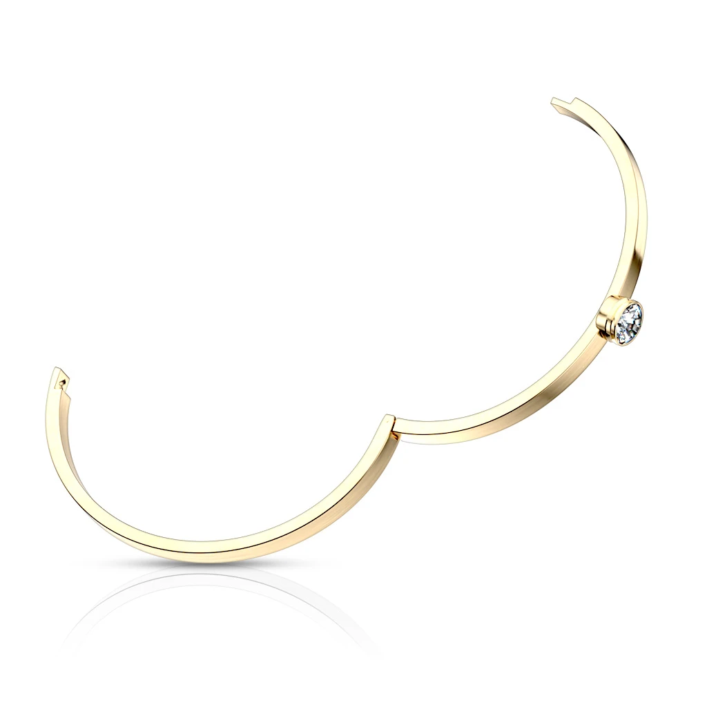 Dámský pevný ocelový náramek se s kamínkem. Náramek z chirurgické oceli pro ženy s leštěným povrchem. Náramek je široký 4 mm, vnitřní rozměr 58x50 mm. Ozdoba se zirkonem má průměr 8 mm.