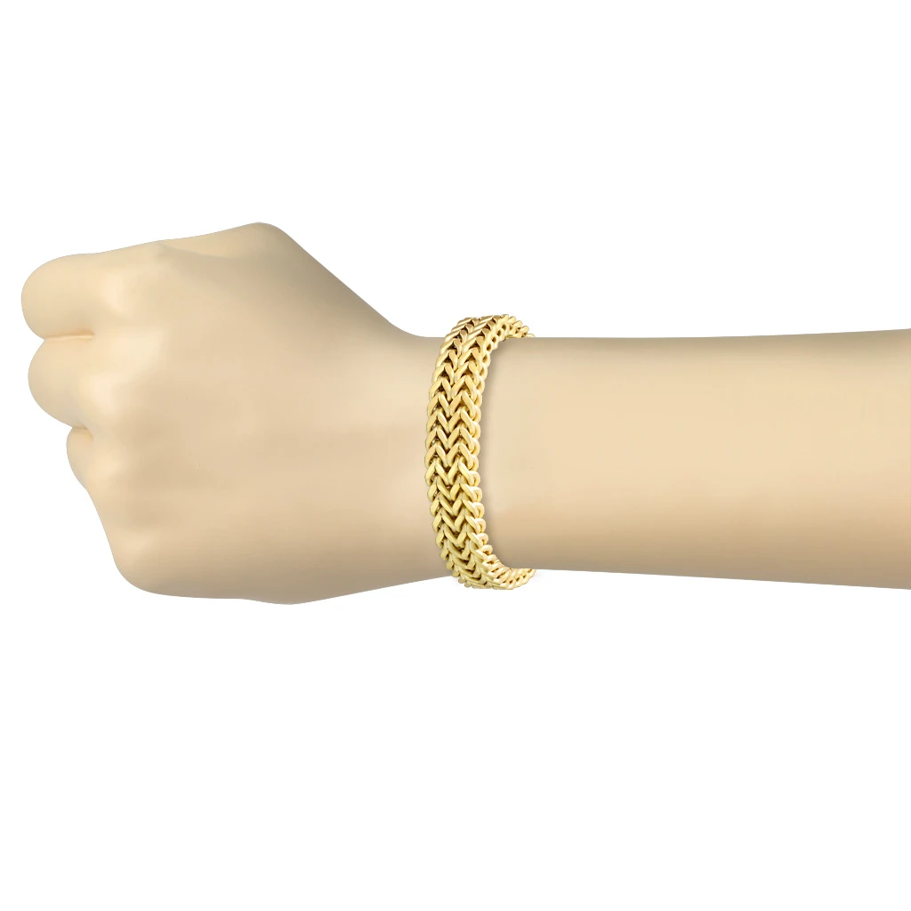 Dámský náramek z chirurgické oceli. Povrch náramku je matný pozlacený technologií PVD. Krásný dámský dvouřadý náramek široký 8mm. Náramek se zapíná pomocí karabiny.