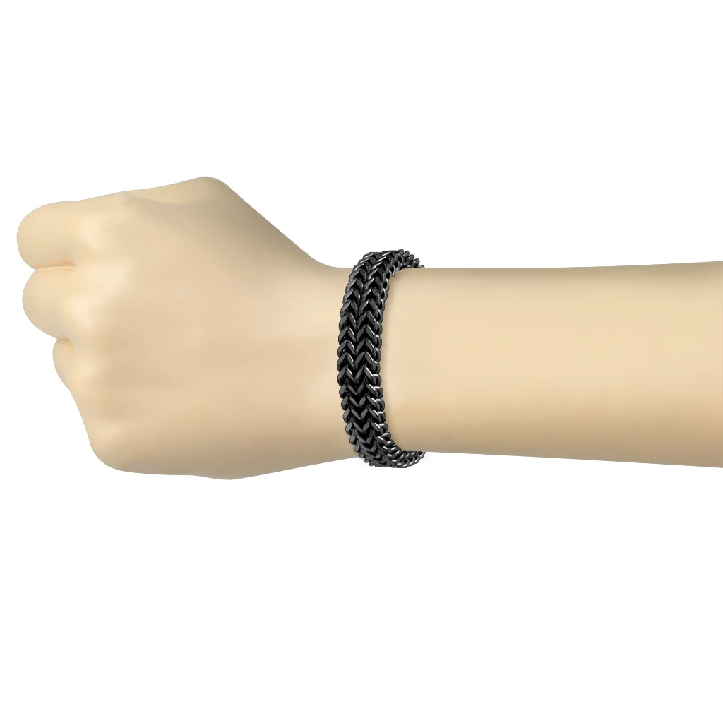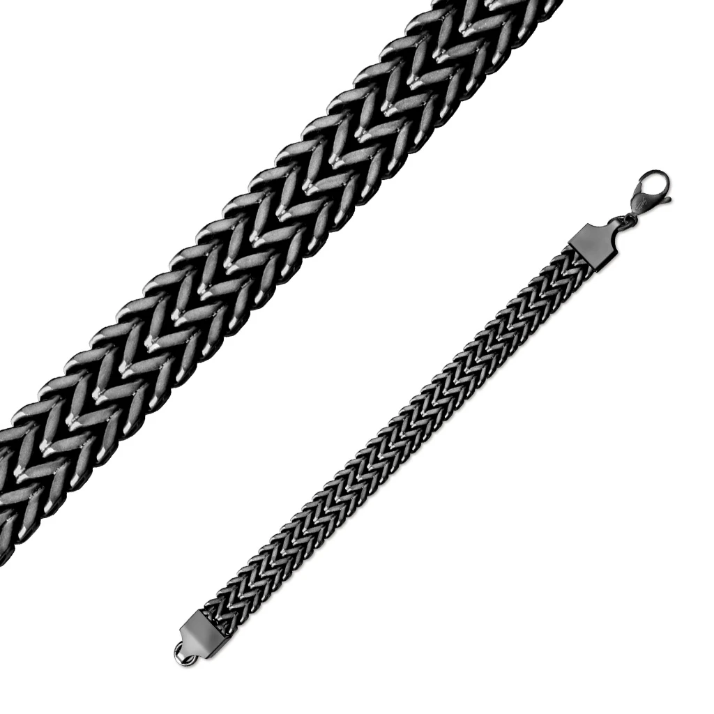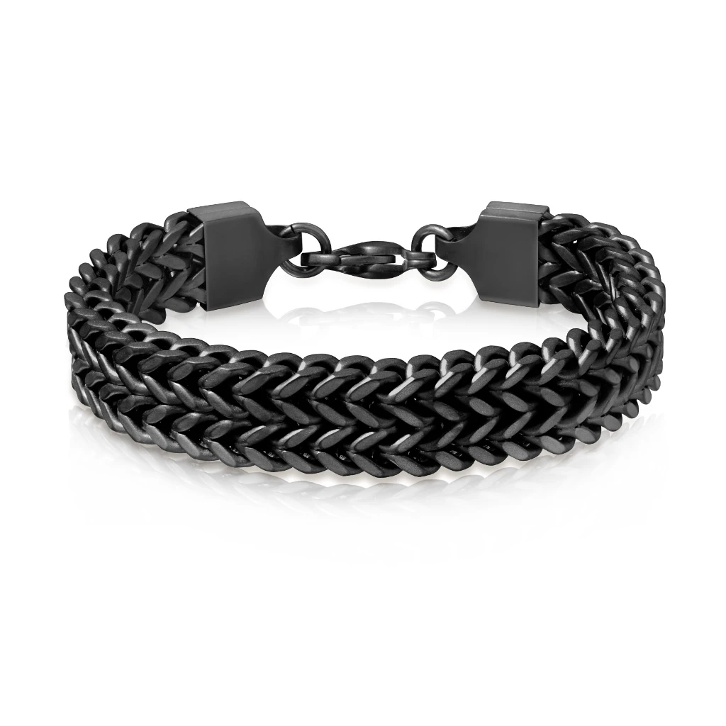 Dámský náramek z chirurgické oceli. Povrch náramku je upravený technologií PVD na černou. Dámský dvouřadý náramek široký 8mm. Náramek se zapíná pomocí karabiny.