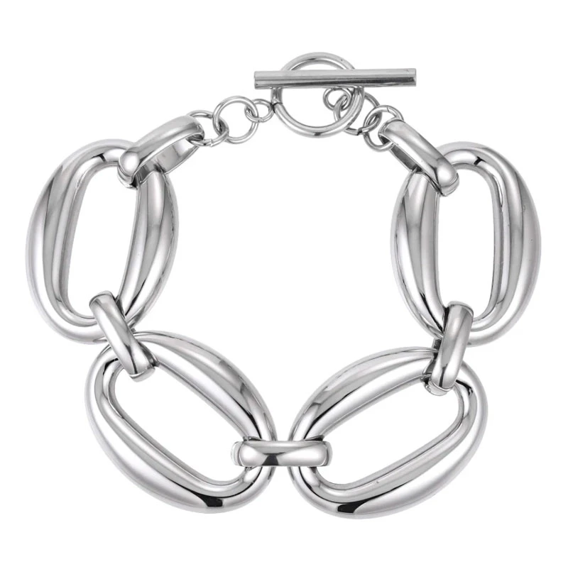 Ocelový náramek pro ženy s leštěným povrchem. Elegantní nadčasový náramek, který díky kvalitní chirurgické oceli vydrží dlouhou dobu. Náramkové zapínání je na T system, Náramek je široký 24mm, délka náramku 20cm.