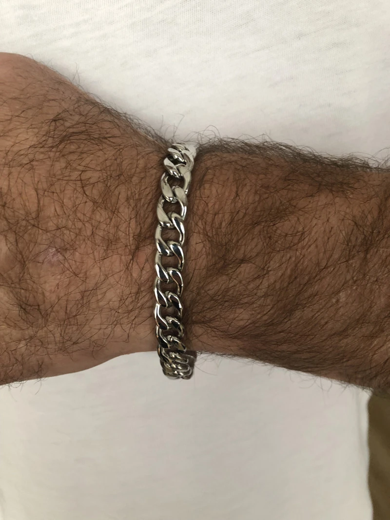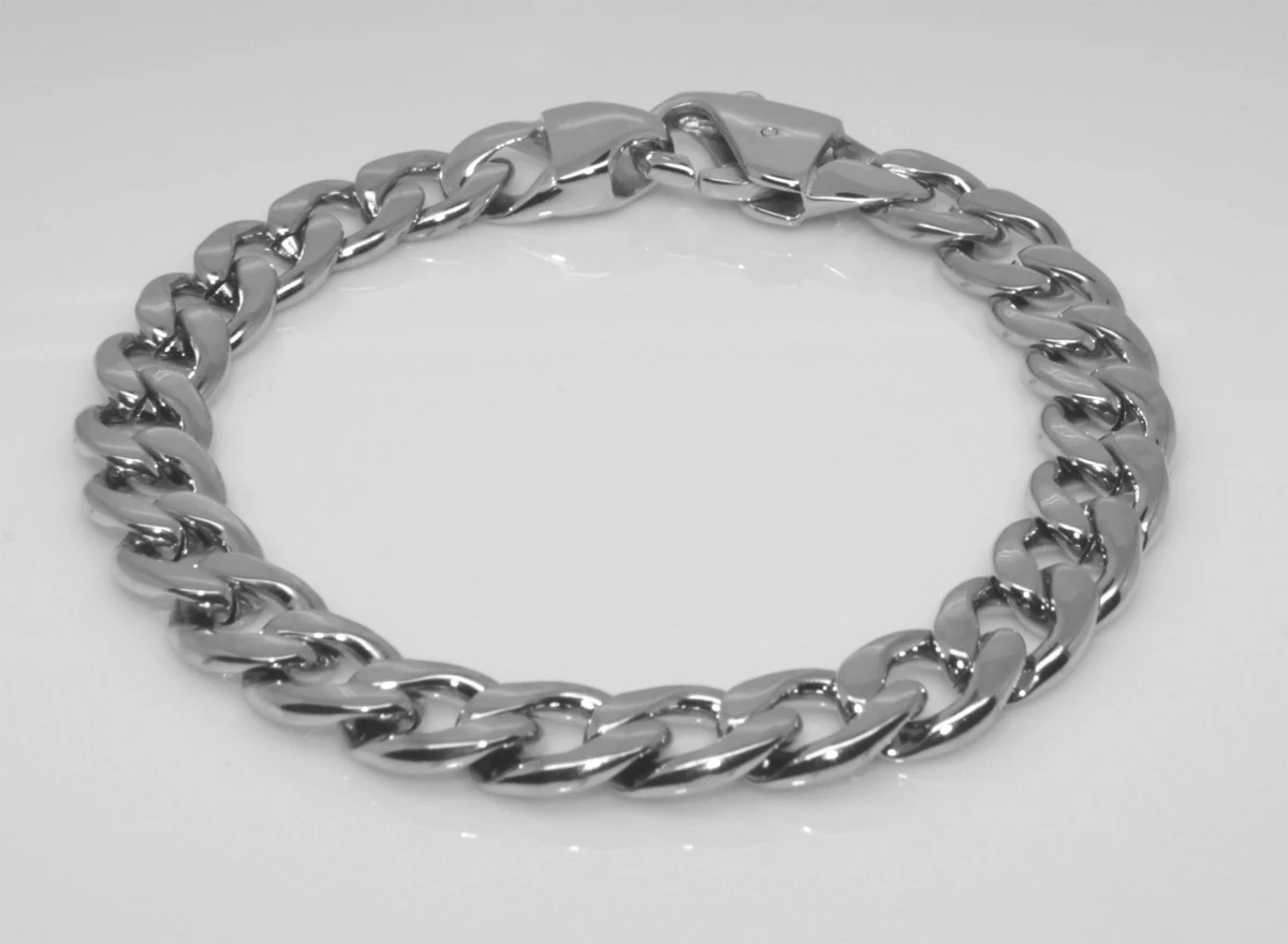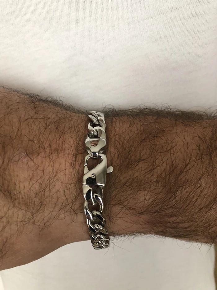 Ocelový náramek pro muže s leštěným povrchem. Zapínání náramku karabinové. Délka náramku 22cm, šířka 10mm.