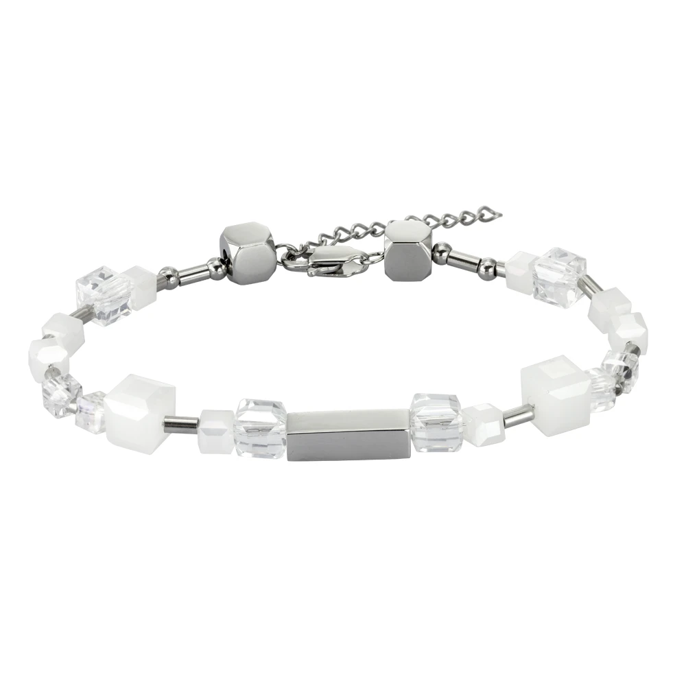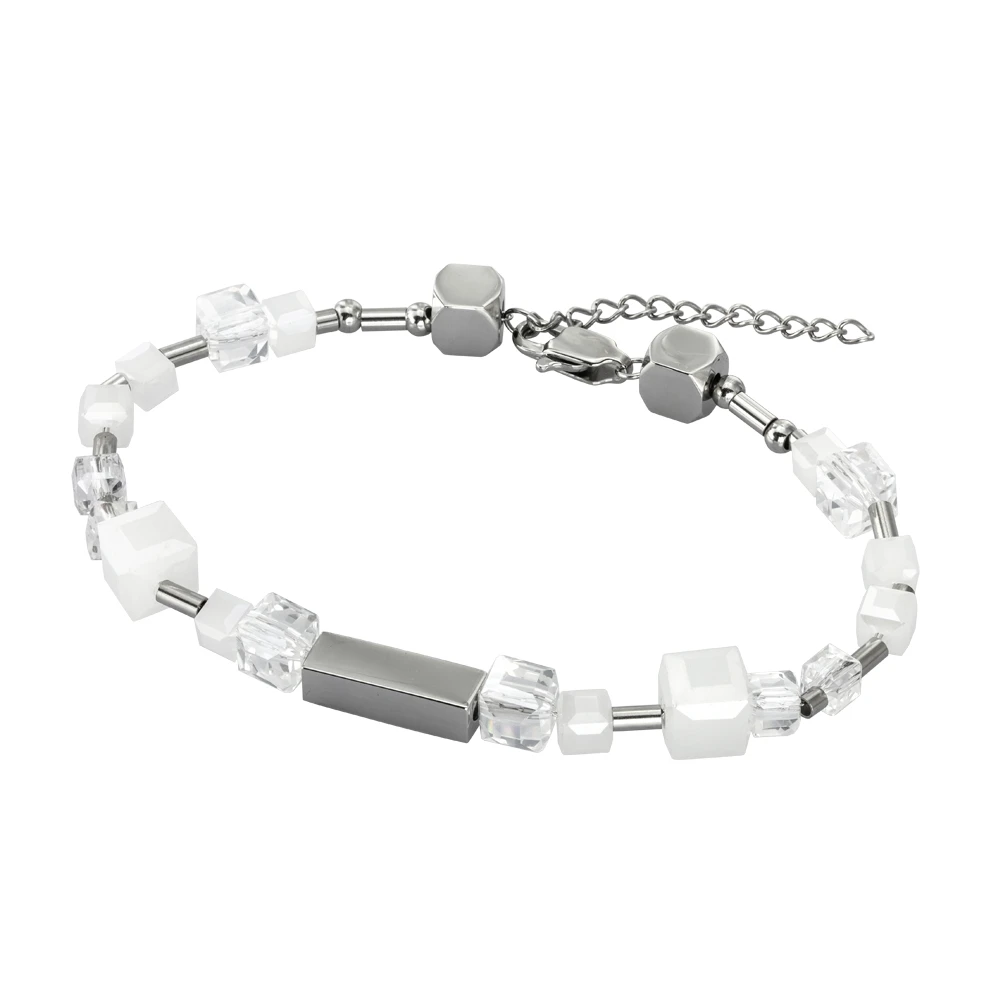 Náramek z oceli a skleněných korálků BSS815WH