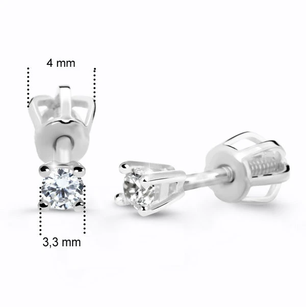 Zlaté náušnice pecky se zirkony vyrobené zlata ryzosti 585/000. Zlaté naušnice pecky s průměrem ozdoby 3,3mm. Naušnicové zapínání na je na šroubek. Průměr šroubovacího zapínání 4 mm.