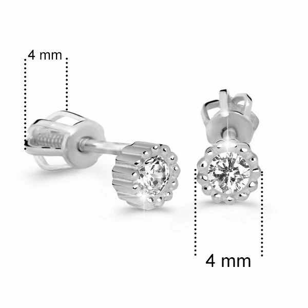 Zlaté náušnice pecky se zirkony vyrobené zlata ryzosti 585/000. Zlaté naušnice s průměrem ozdoby 4 mm. Naušnicové zapínání na je na šroubek. Průměr šroubovacího zapínání 4 mm.