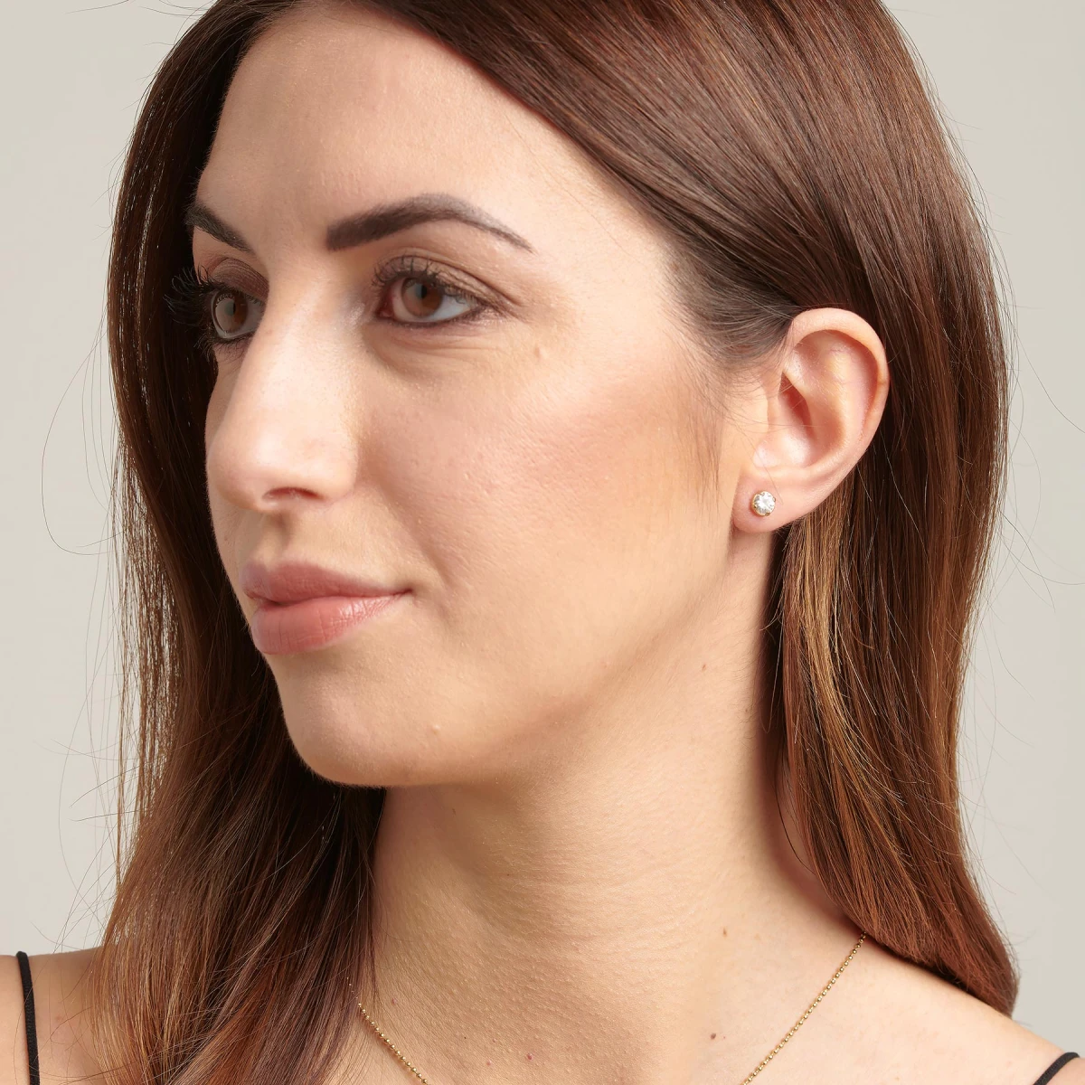 Ocelové dámské náušnice pecky z kolekce Desideri. Povrch náušnic je pozlacený technologií PVD. Pecky zdobí zářivé zirkony. Průměr náušnic 6mm. Náušnicové zapínání je na puzetky.