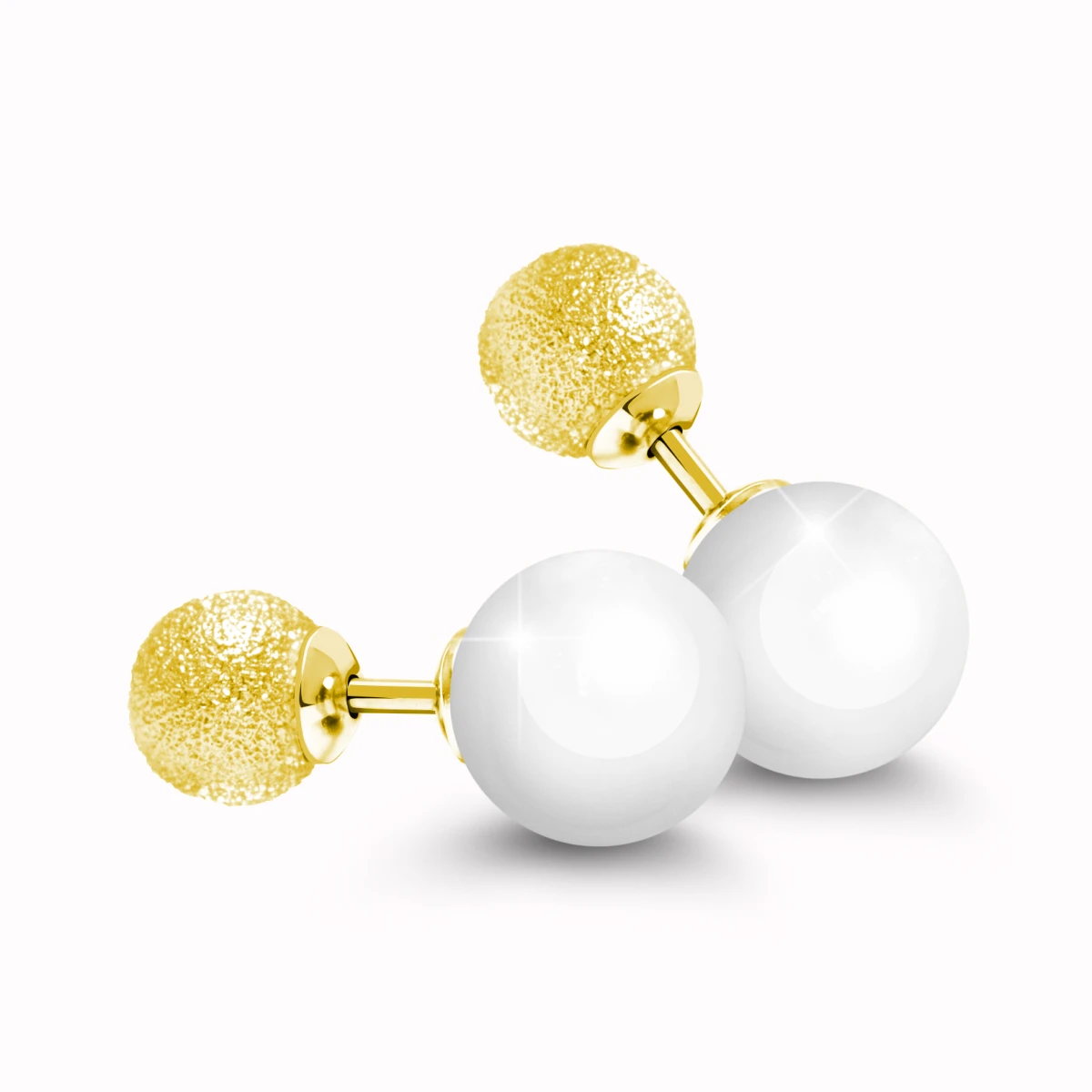 Náušnice pecky z pozlaceného stříbra 925/1000 a bílé keramiky. Náušnice, které je možné nosit oboustranně. Průměr pozlacené kuličky 4mm, průměr keramické kuličky 6mm.