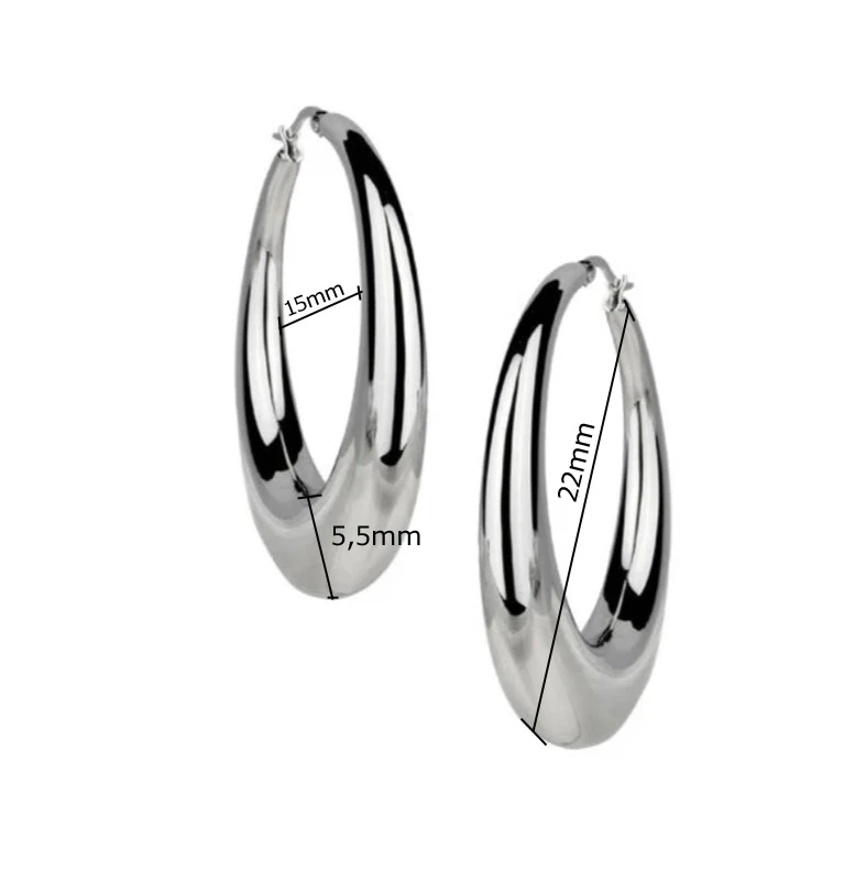 Náušnice z chirurgické oceli kruhového tvaru. Povrch náušnic je leštěný. Náušnice mají vnější průměr 22mm. Všechny rozměry náušnic najdete na podpůrné fotografii. Zapínání náušnic je na francouzský zámek. Cena je uvedena za pár.