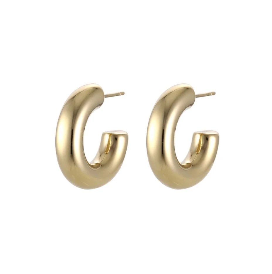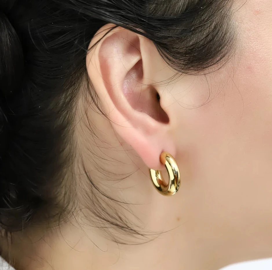 Robusní pozlacené kruhové náušnice z chirurgické oceli. Náušnice jsou "duté" a i přes jejich rozměry se pohodlně nosí. Vnější průměr náušnic 30mm, šířka 10mm. Náušnicové zapínání je na puzety.