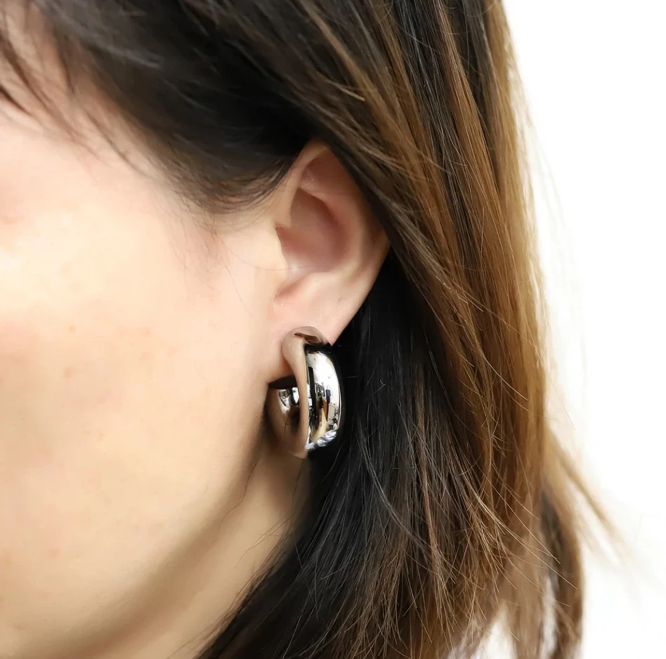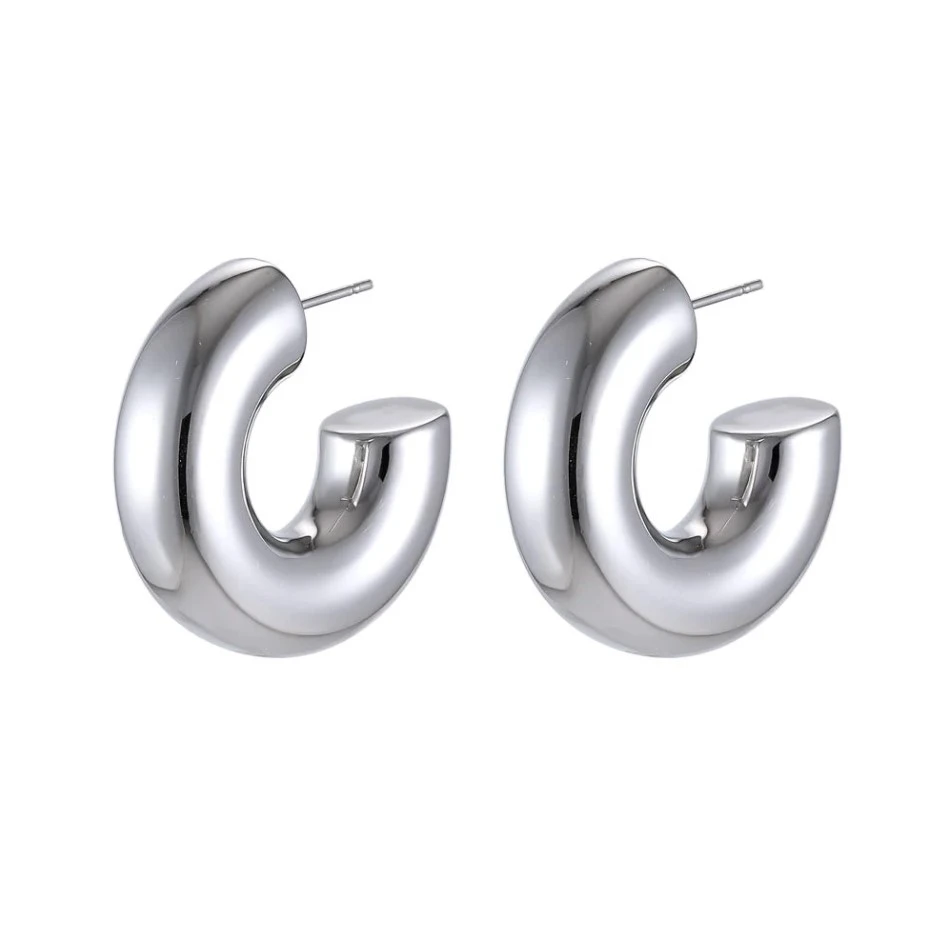 Robusní kruhové náušnice z chirurgické oceli. Náušnice jsou "duté" a i přes jejich rozměry se pohodlně nosí. Vnější průměr náušnic 30mm, šířka 10mm. Náušnicové zapínání je na puzety.