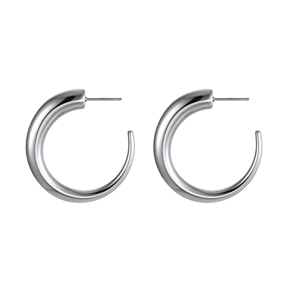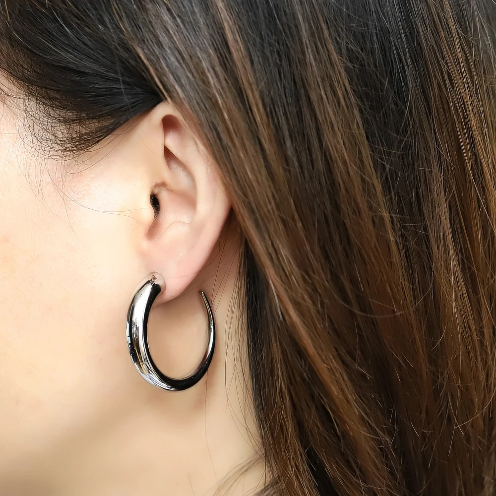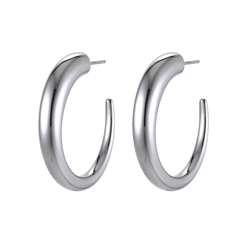 Robusní kruhové náušnice z chirurgické oceli. Náušnice jsou "duté" a i přes jejich rozměry se pohodlně nosí. Vnější průměr náušnic 35mm, náušnice je v nejširším bodě u ucha široká 7mm a postupně se zužuje na 2,5mm . Náušnicové zapínání je na puzety.