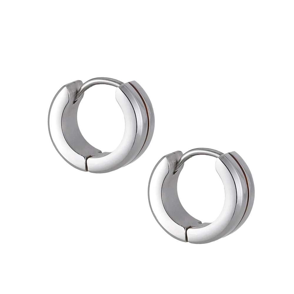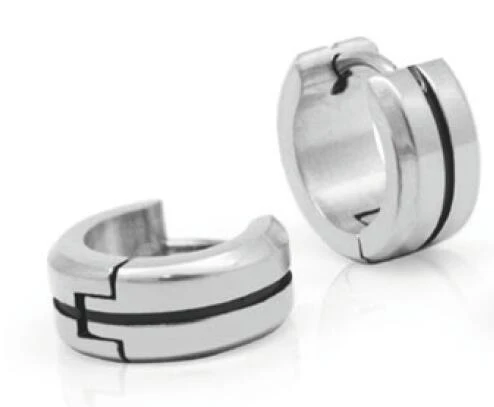 Náušnice z chirurgické oceli kroužky. Povrch náušnic je leštěný s černou linkou. Náušnice jsou široké 6mm, vnější průměr náušnic 13mm. Náušnicové zapínání je na kloub. Uvedená cena platí za pár.