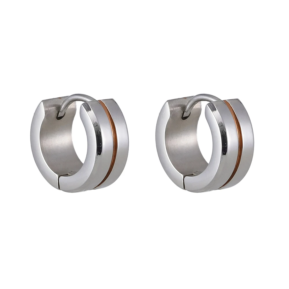 Náušnice z chirurgické oceli kroužky. Povrch náušnic je leštěný, linka uprostřed náušnice je pozlacená technologií PVD. Náušnice jsou široké 6mm, vnější průměr náušnic 13mm. Náušnicové zapínání je na kloub. Uvedená cena platí za pár.