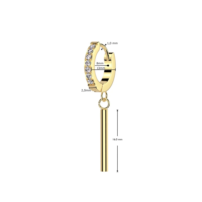 Ocelové náušnice kroužky se zirkony. Náušnice jsou ozdobené prvotřídními zirkony. Povrch náušnic je leštěný. Vnější průměr kroužků 13mm, vnitřní průměr 8mm, šířka náušnic 2mm, celková délka náušnic 33mm. Náušnicové zapínání je kloubové. Uvedené rozměry náušnic najdete zobrazené na podpůrné fotografii. Cena je uvedena za pár ocelových náušnic se zirkony.
