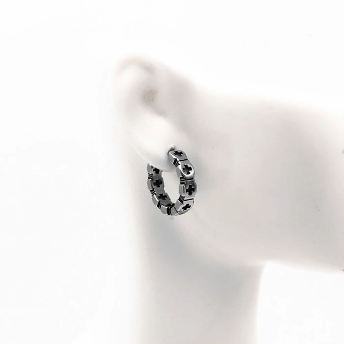 Kroužky z chirurgické oceli. Náušnice kroužky zdobené plastickým motivem. Kroužky jsou široké 4,2mm, vnější průměr náušnic 17mm. Uvedená cena platí za pár náušnic.