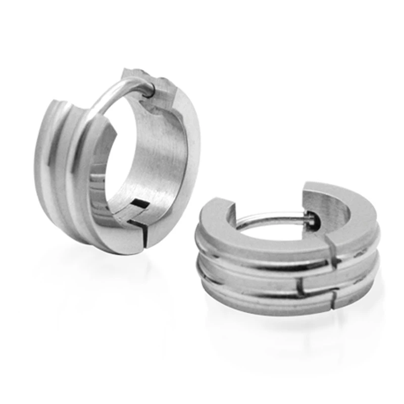 Náušnice z chirurgické oceli kroužky. Povrch náušnic je kombinace mat/lesk. Náušnice jsou široké 5mm, vnější průměr náušnic 13mm. Náušnicové zapínání je na kloub.