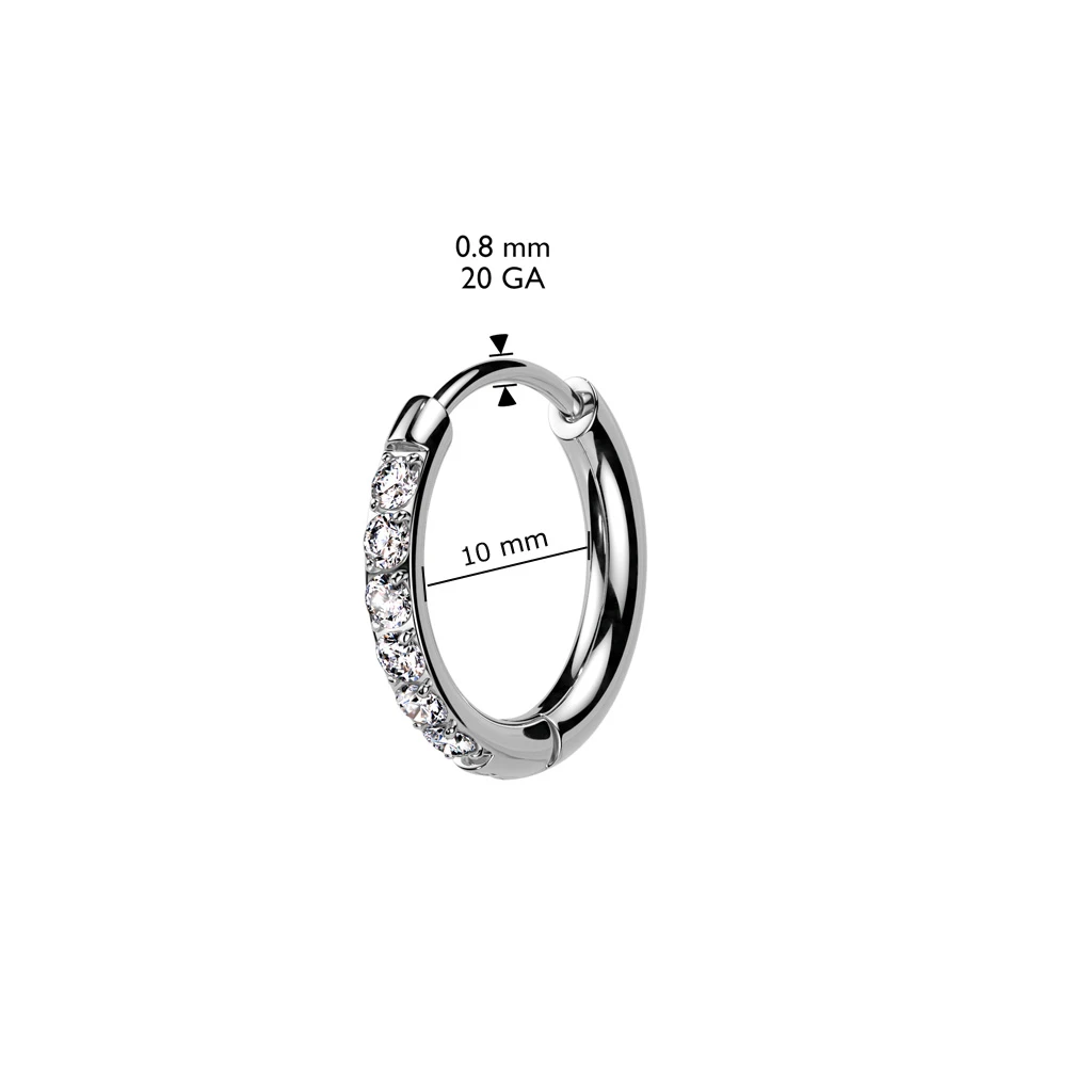 Jemné náušnice kroužky z chirurgické oceli. Povrch náušnic je leštěný ozdobený prvotřídními zirkony. Vnitřní průměr náušnic 10mm, vnější průměr náušnic 13mm. Náušnicové zapínání je kloubové. Uvedená cena platí za pár náušnic.