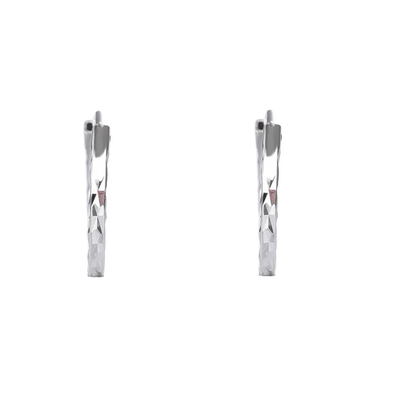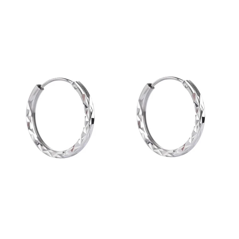 Kruhové stříbrné náušnice se vzorem. Náušnice velké kruhy vyrobené ze stříbra 925/1000. Povrch náušnic je porhodiovaný. Úprava náušnic rhodiováním jim dodává jasnou barvu s leskem, zvyšuje odolnost povrchu proti poškrábání a zaručuje jejich dlouhodobý bezchybný vzhled. Náušnice jsou široké 2mm, vnější průměr 20mm.
