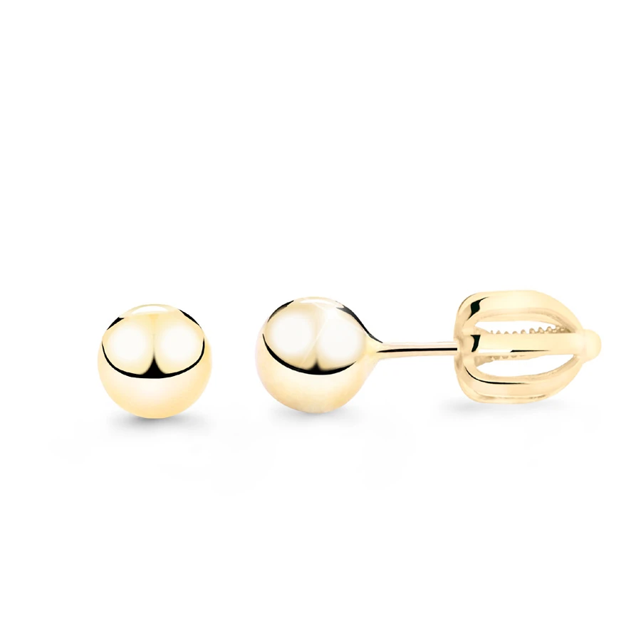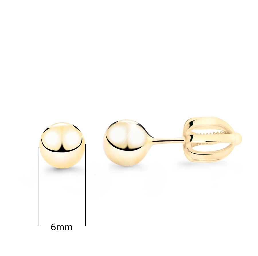 Náušnice pecky na šroubek ze žlutého zlata ryzosti 585/1000. Zlaté náušnice kuličky se zapínáním na šroubek. Průměr kuličky 6mm. Průměr dříku 0,9mm.