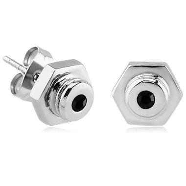 Náušnice vyrobené z chirurgické oceli. Rozměr ozdobné části náušnic 8x8mm. Náušnice se zapínají pomocí puzetek. Průměr dříku zapínání 0,75mm.