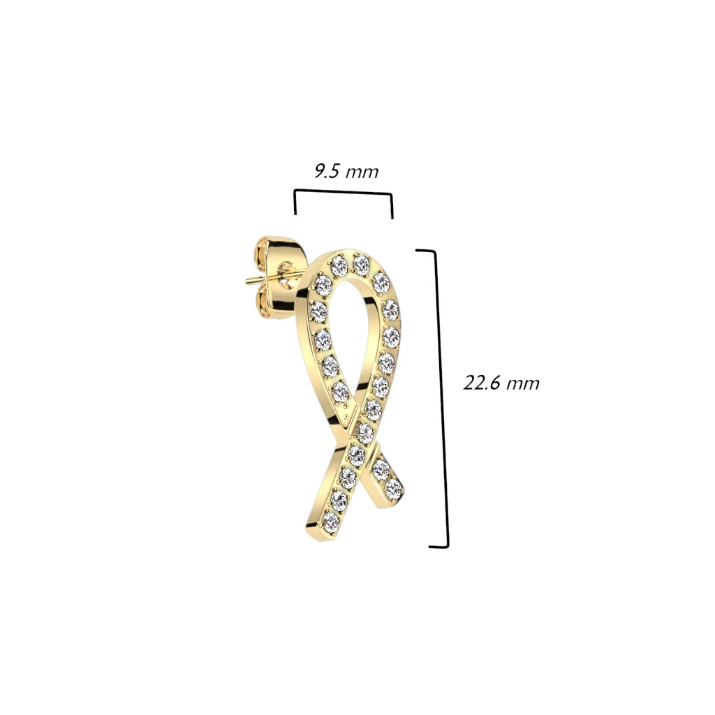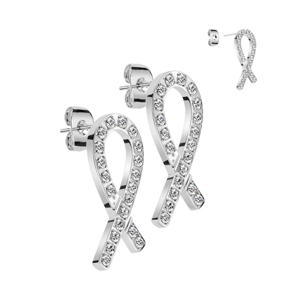 Ocelové náušnice pecky se zirkony. Povrch náušnic je leštěný. Náušnicové zapínání je na puzetky. Rozměr ozdoby náušnic 22,6 x 9,5 mm, průměr dříku 0,8mm, šíře puzetky 6,5 mm.