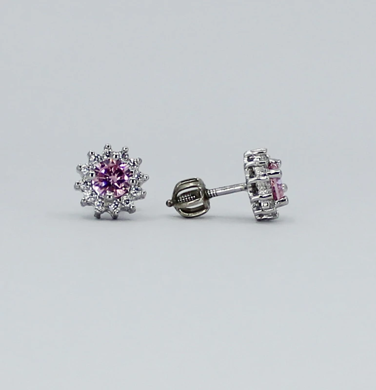 Stříbrné náušnice pecky na šroubek. Náušnice jsou vyrobené ze stříbra ryzosti 925/000. Povrch náušnic porhodiovaný ozdobený prvotřídními zirkony. Úprava rhodiováním dodává náušnicím jasnou barvu s leskem, zvyšuje odolnost povrchu proti poškrábání a zamezuje přirozené oxidaci stříbra, náušnice tak budou mít po dlouhou dobu bezvadný vzhled. Průměr náušnic 8 mm. Náušnicové zapínání je na praktický šroubek.