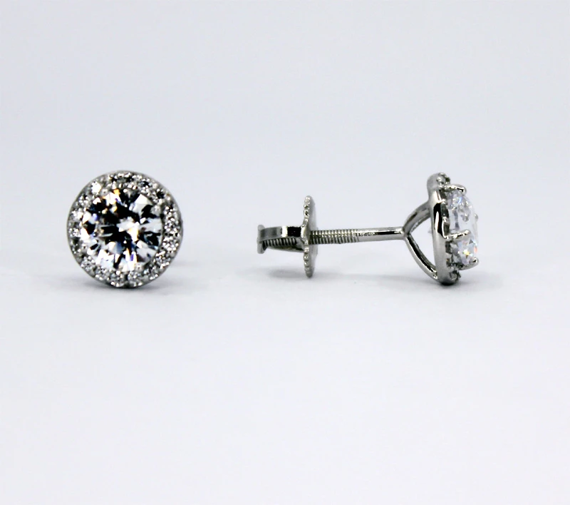 Stříbrné náušnice pecky na šroubek. Náušnice jsou vyrobené ze stříbra ryzosti 925/000. Povrch náušnic porhodiovaný ozdobený prvotřídními zirkony. Úprava rhodiováním dodává náušnicím jasnou barvu s leskem, zvyšuje odolnost povrchu proti poškrábání a zamezuje přirozené oxidaci stříbra, náušnice tak budou mít po dlouhou dobu bezvadný vzhled. Průměr náušnic 9 mm. Náušnicové zapínání je na praktický šroubek.