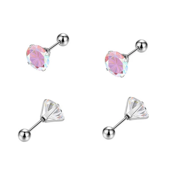 Ocelové náušnice pecky se zapínáním na šroubek, dřík má průměr 1,0mm, šroubovací kulička má průměr 4mm. Díky zapínání se šroubovací kuličkou náušnice netlačí a pohodlně se nosí. Průměr duhového zirkonu 3mm. Uvedená cena platí za pár.