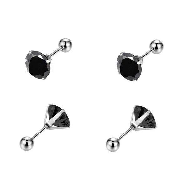 Ocelové náušnice pecky se zapínáním na šroubek, dřík má průměr 1,0mm, šroubovací kulička má průměr 4mm. Díky zapínání se šroubovací kuličkou náušnice netlačí a pohodlně se nosí. Průměr černého zirkonu 3mm. Uvedená cena platí za pár.