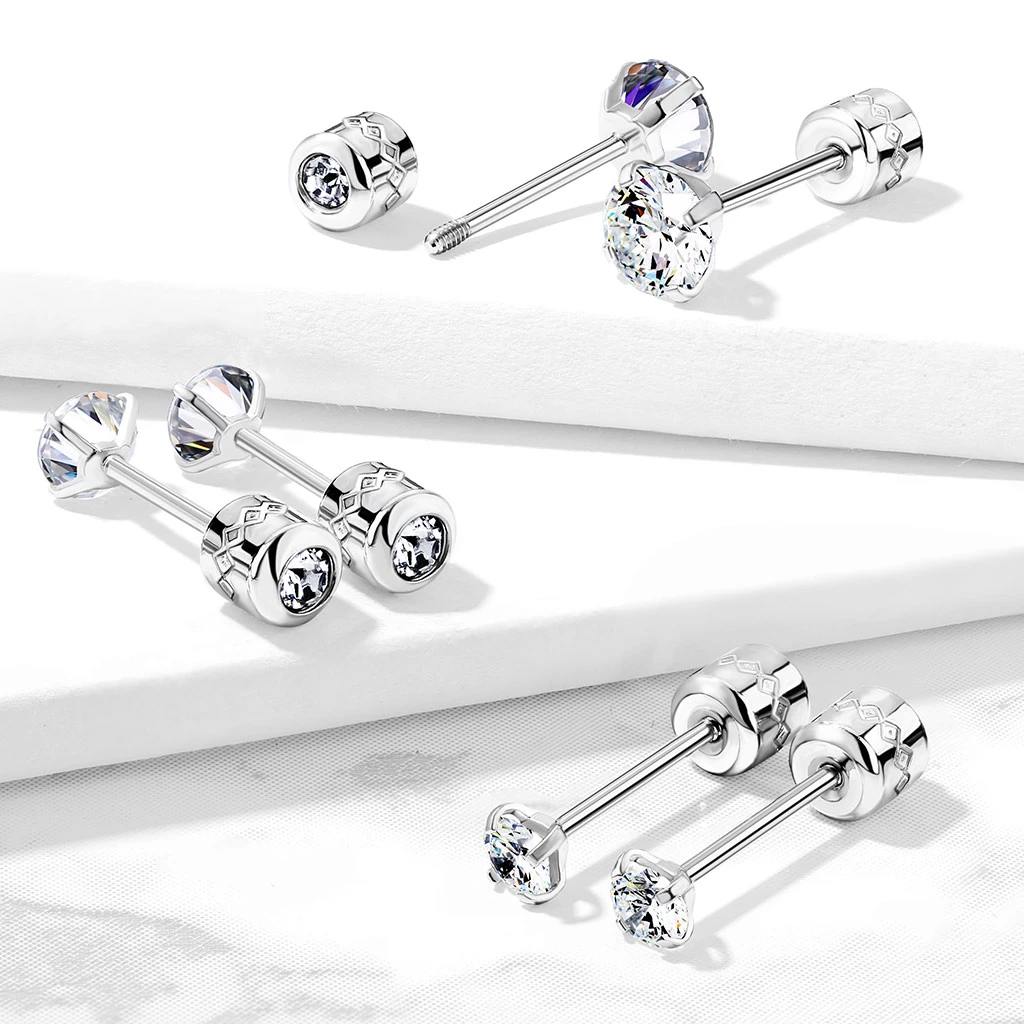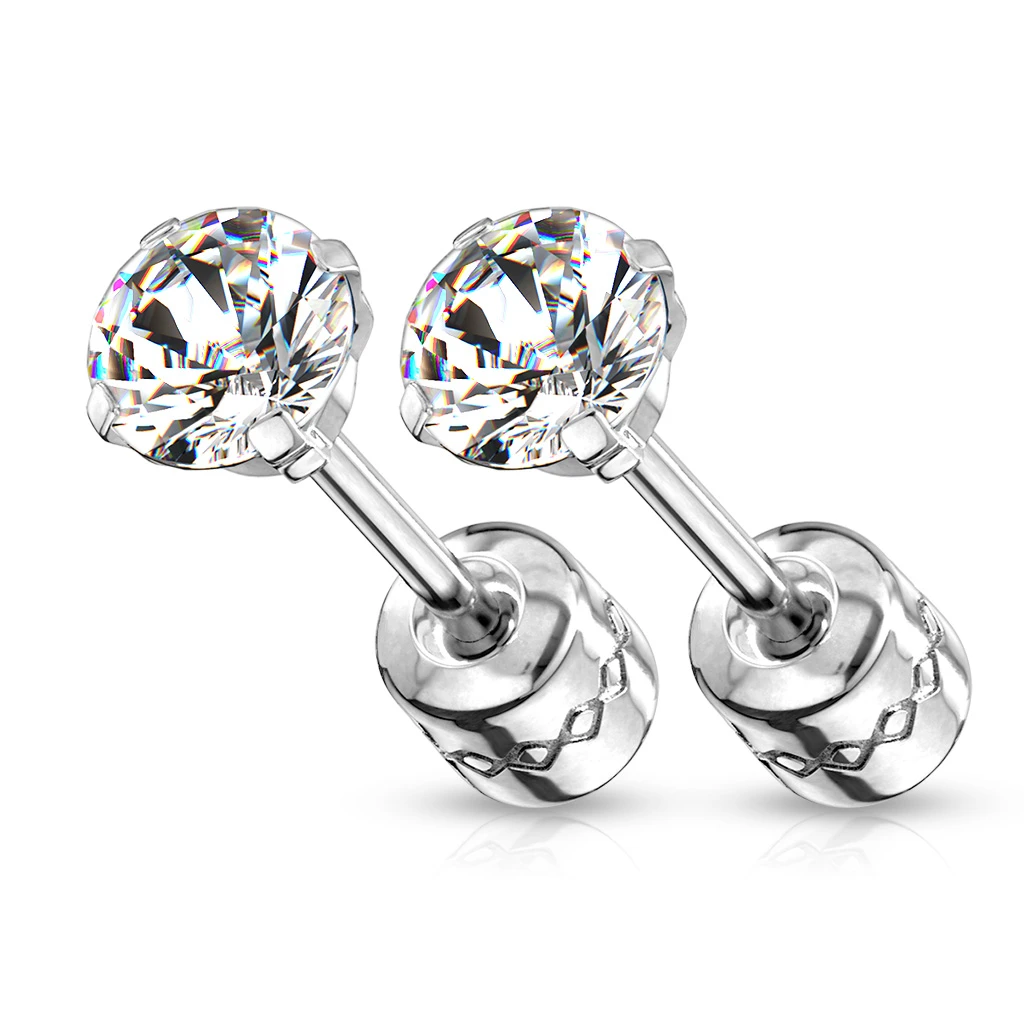Náušnice na šroubek vyrobené z chirurgické oceli. Na šroubku je kamínek. Šroubovací část má průměr 4 mm. Kamínek je možné zvolit v průměru 3,4,5 mm.