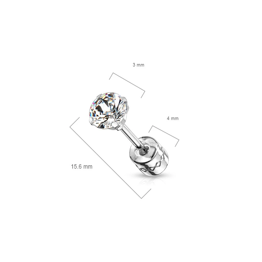 Náušnice na šroubek vyrobené z chirurgické oceli. Na šroubku je kamínek. Šroubovací část má průměr 4 mm. Kamínek je možné zvolit v průměru 3,4,5 mm.