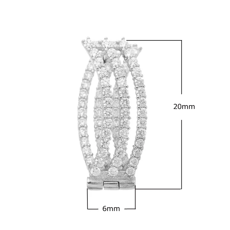 Náušnice visací vyrobené z kvalitního stříbra 925/1000. Náušnice jsou osazené prvotřídními zirkony. Povrch náušnic je porhodiovaný, což jim dodává jasnou barvu s leskem, potlačuje přirozenou oxidaci stříbra, zvyšuje odolnost povrchu proti poškrábání a zaručuje dlouhodobý bezvadný vzhled náušnic. Náušnice jsou široké 6 mm, velikost náušnic 20 mm. Náušnicové zapínání je na ruský patent.