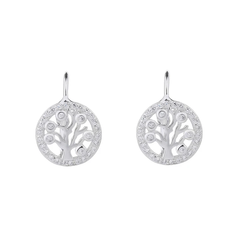 Visací náušnice se stromem života ze stříbra 925/1000. Ozdoba se stromem života je ozdobená kvalitními zirkony. Povrch náušnic je porhodiovaný. Úprava rhodiováním dává náušnicím jasnou barvu s leskem, potlačuje přirozenou oxidaci stříbra a zaručuje náušnicím dlouhodobý bezvadný vzhled. Náušnicové zapínání je na klapku. Rozměry náušnic najdete na podpůrné fotografii.