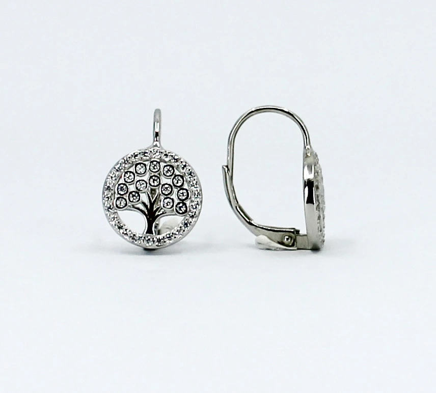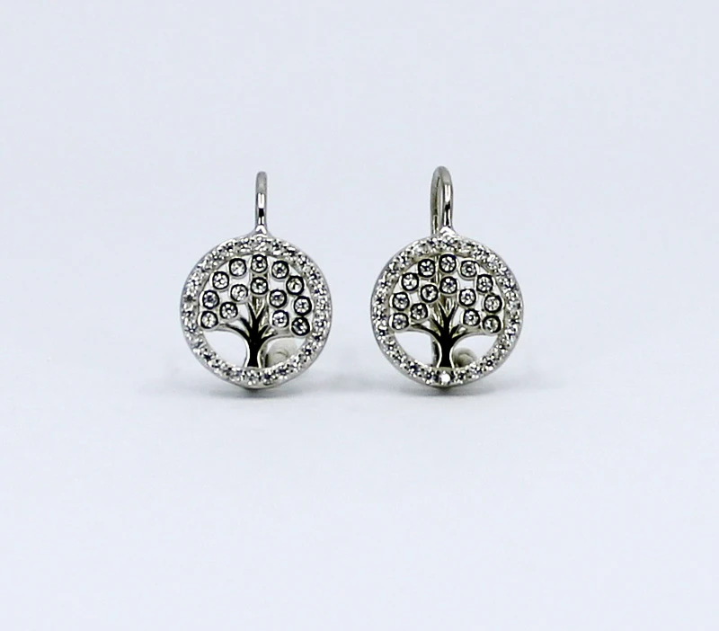 Visací náušnice se stromem života ze stříbra 925/1000. Ozdoba se stromem života je ozdobená kvalitními zirkony. Povrch náušnic je porhodiovaný. Úprava rhodiováním dává náušnicím jasnou barvu s leskem, potlačuje přirozenou oxidaci stříbra a zaručuje náušnicím dlouhodobý bezvadný vzhled. Náušnicové zapínání je na klapku. Kulatá ozdoba se stromem života má průměr 11mm, délka náušnice 16mm.
