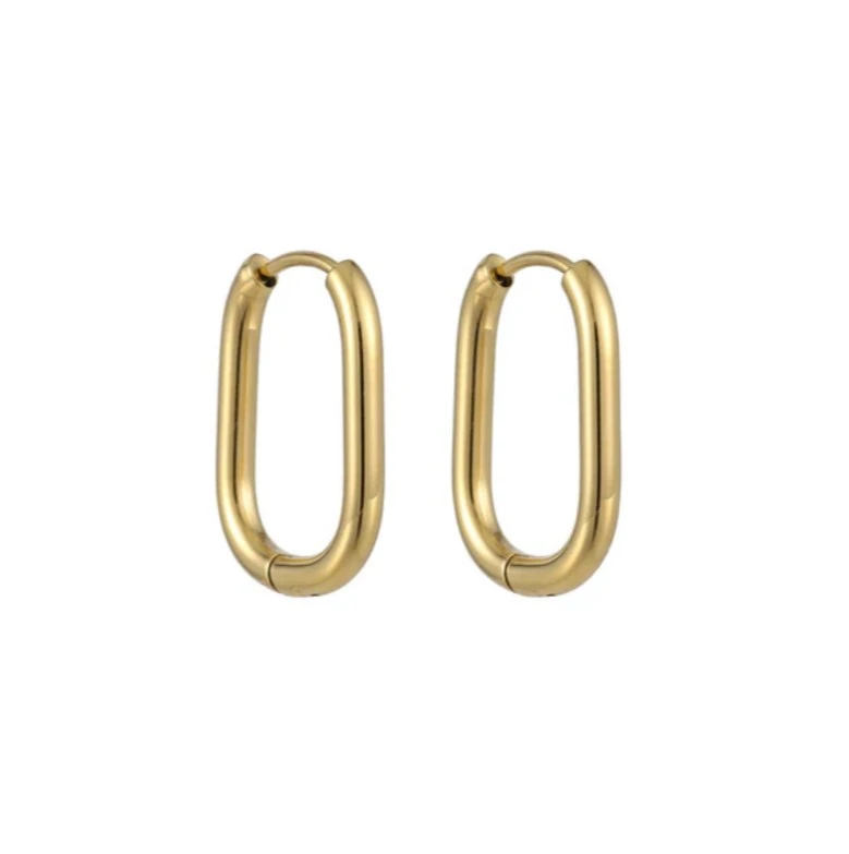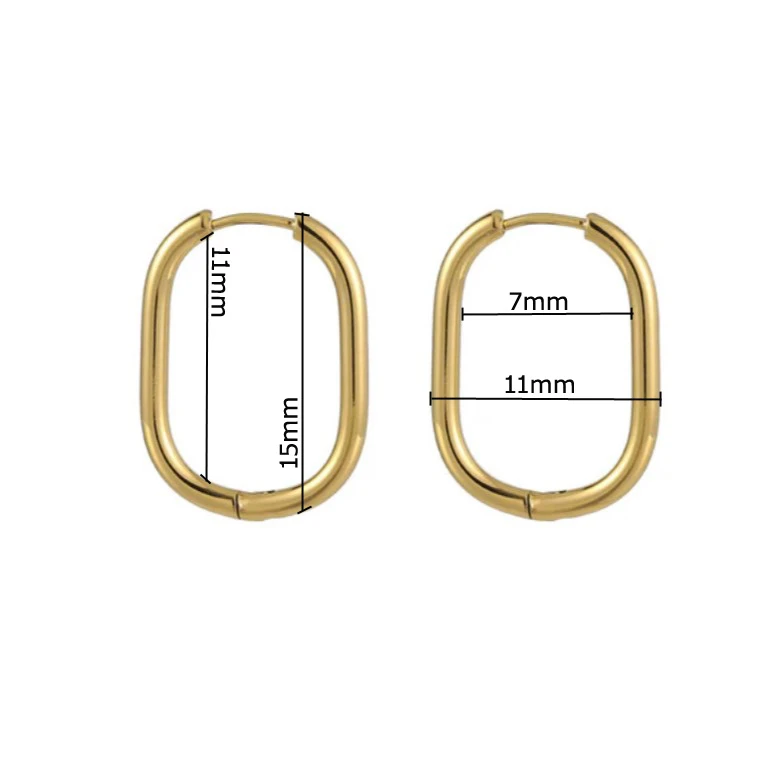 Visací náušnice z chirurgické oceli oválného tvaru. Povrch náušnic je leštěný. Náušnice jsou široké 11mm, dlouhé 15mm. Všechny rozměry náušnic najdete na podpůrné fotografii. Zapínání náušnic je kloubové. Cena je uvedena za pár.