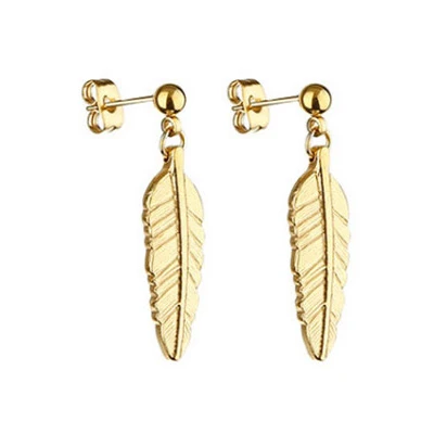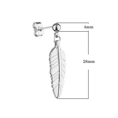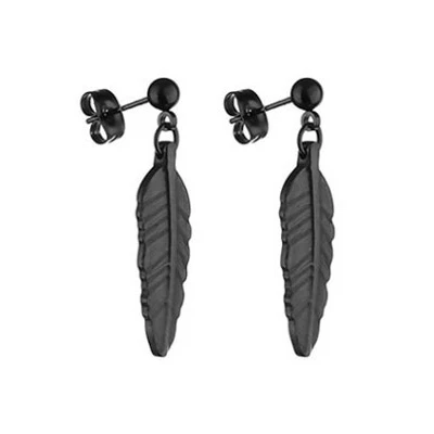 Visací náušnice z chirurgické oceli s ozdobou pírka. Povrch náušnic je leštěný. Náušnicové zapínání je na puzetky. Celková délka náušnice 32mm.