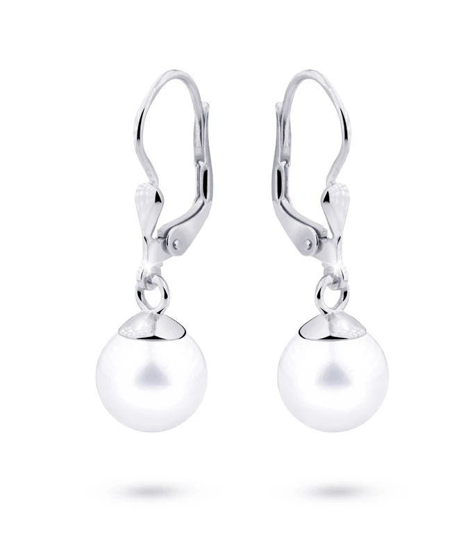 Náušnice z bílého zlata s visací perlou Z3016B