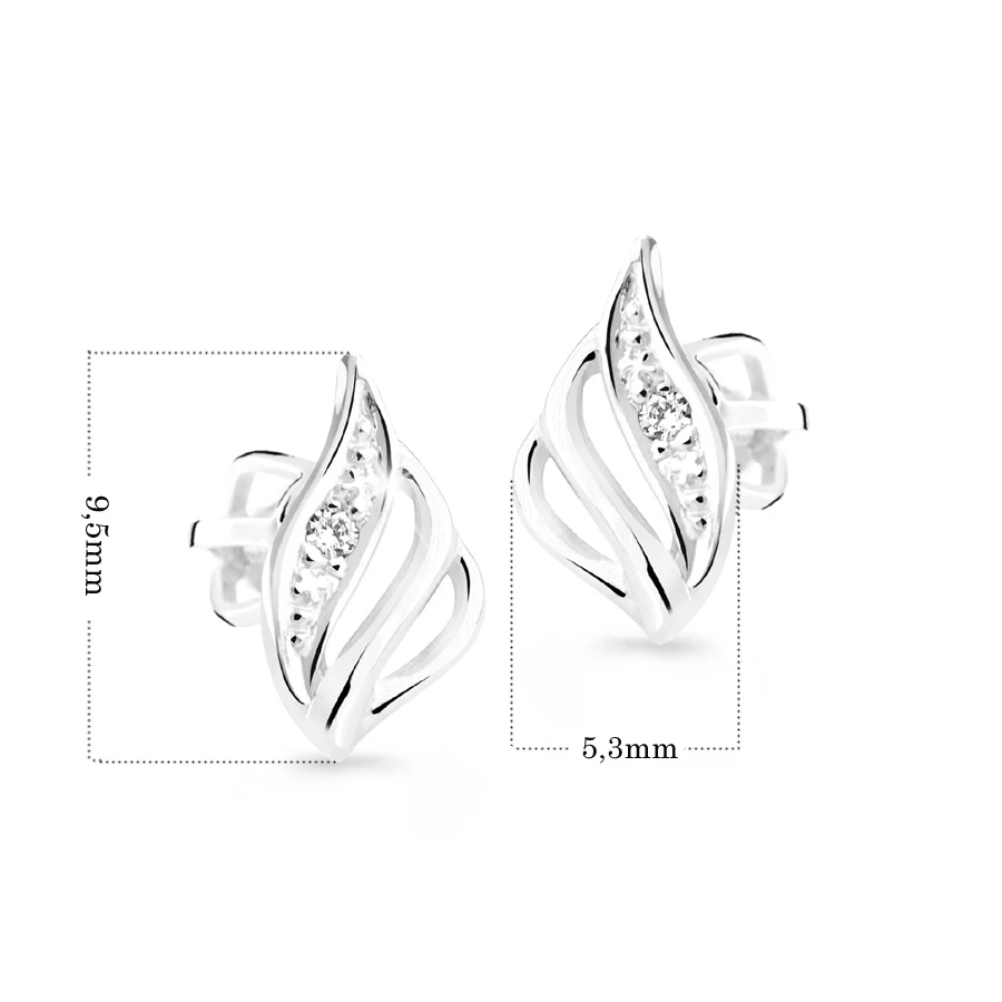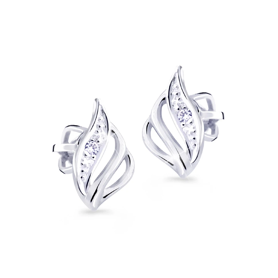 Náušnice z bílého zlata ryzosti 585/000. Zlaté náušnice pecky se zirkony se zapínáním na šroubek.