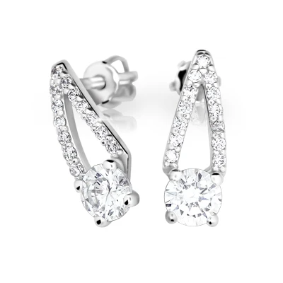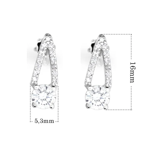 Zlaté náušnice se zirkony se zapínáním na šroubek. Elegantní dámské náušnice vyrobené ze zlata ryzosti 585/1000. Rozměry náušnice najdete zobrazené na podpůrné fotografii.