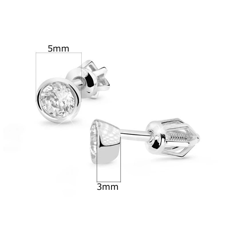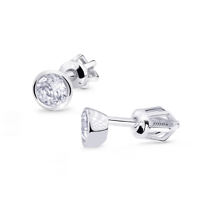 Náušnice z bílého zlata 585/1000 se zirkony. Zlaté náušnice pecky se zapínáním na šroubek. Rozměry náušnic naleznete zobrazené na podpůrném obrázku.